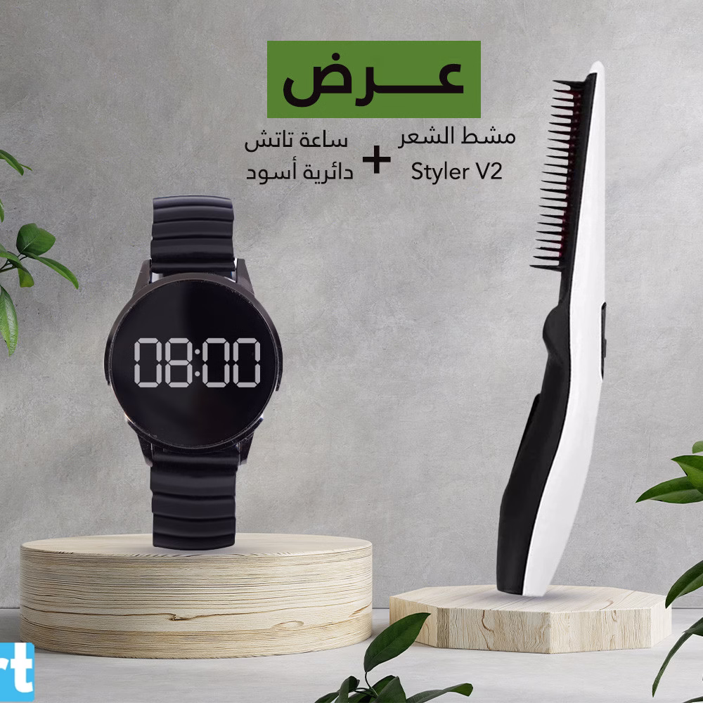 مظهرك وشياكتك هما اللي هيكملة اليوم معاك عشان كدة قررنا نوفرلك عرض مشط الشعر StylerV2 +ساعة تاتش دائرية أسود.