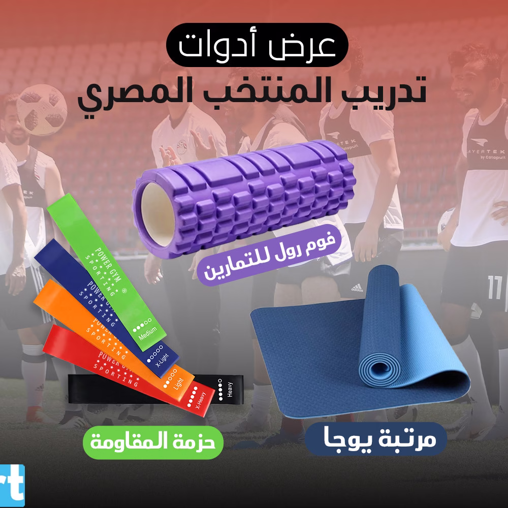 عرض أدوات تدريب المنتخب المصري (الفوم رول للتمارين + مجموعة أحزمة المقاومة+مرتبة يوجا وتمارين بشنطة )