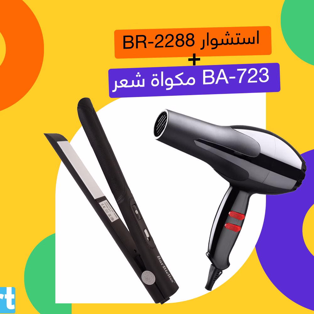 شعرك هيظهر بلوك طبيعي وناعم مع عرض الأناقة BR-2288 استشوار +مكواة شعر BA-723 اطلبيه دلوقتي وتألقي.