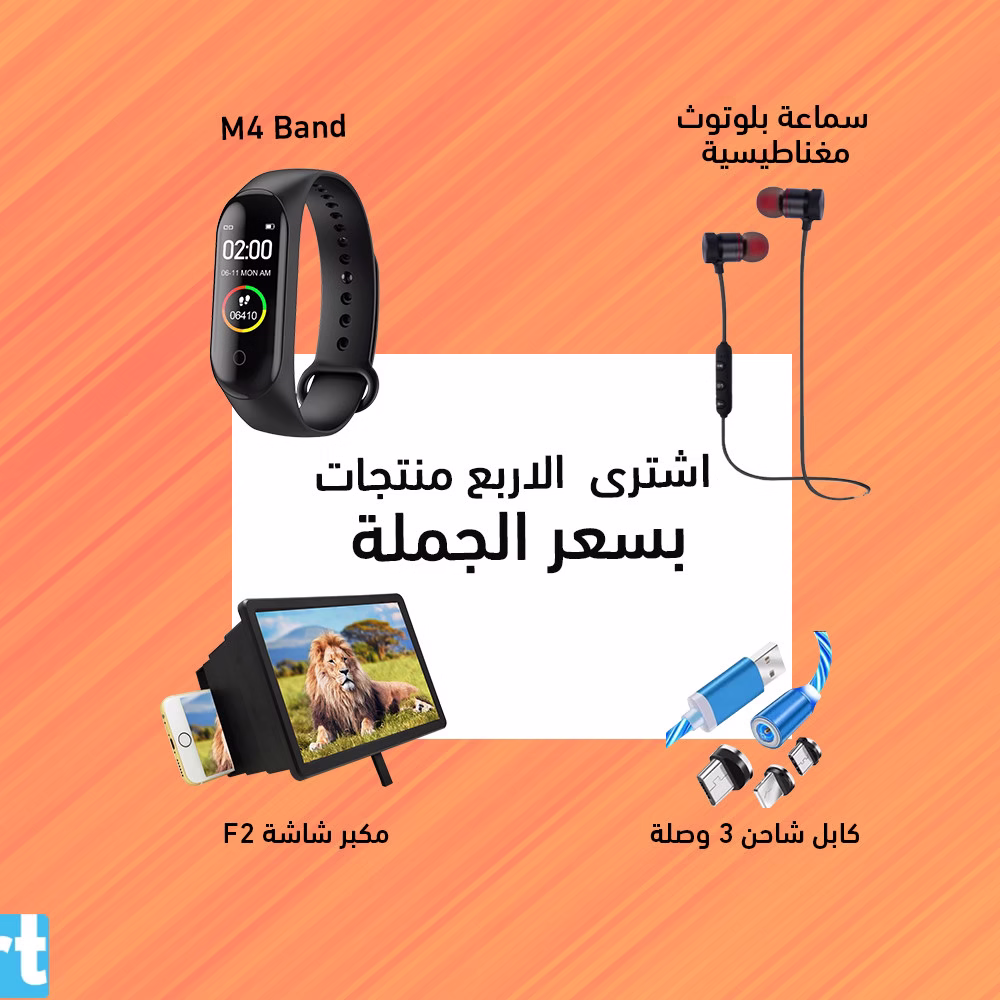 عرض الجمله من باي مارت M4 Smart Band + سماعة بلوتوث مغناطيسية + مكبر شاشة F2 + كابل شاحن 3 وصلة أشترى الأن